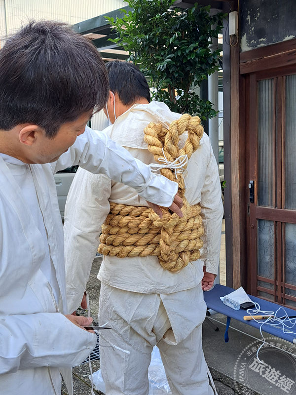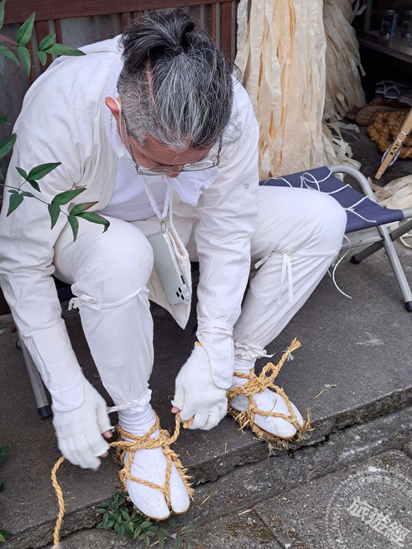 「上り子」換上傳統白色祭裝,身著白衣、腰綁粗麻繩,腳穿白布草鞋 ( 攝影 / 廖晨光 )