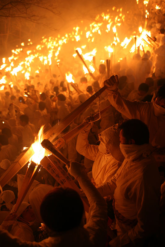 「御燈祭」起源於日本古代對火的崇拜,被視為一種「火的洗禮」。在古老的泛靈信仰中,火具有「重生」與「淨化」的雙重意義。此祭典傳統上象徵著迎接新的一年,於每年二月初春舉行火祭,相傳為了透過神聖的火焰驅散冬日的陰邪與穢氣,並祈求新的一年五穀豐登、家庭平安。這場祭典最獨特之處在於其仍遵循嚴格的傳統:它是「男人的祭典」!至今仍維持「女人禁制」的古禮進行,祭典期間女性不得進入神倉山境內。這並非單純的性別隔閡,而是為了維持祭典原始的陽剛力量與宗教神聖性。因此,女性多會聚集在山下參道兩旁等候,迎接家人完成儀式平山下山。