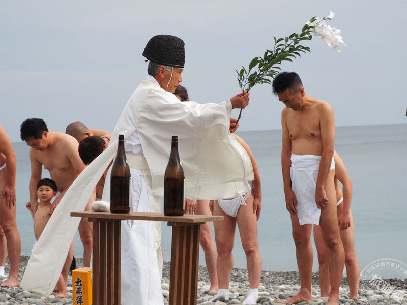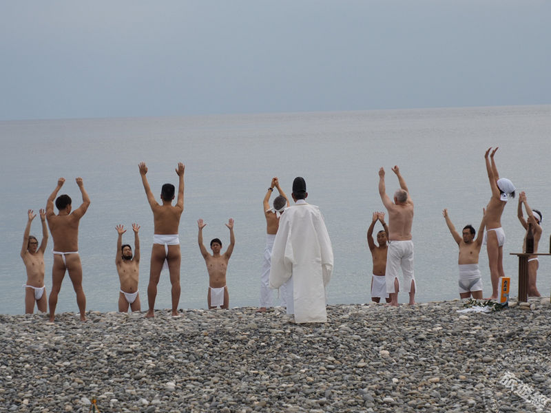 祭典的儀式感,是從肉體的極致磨練開始的。在 2 月 6 日祭典當日上午,城市甦醒,參與夜間火祭的男性「上り子」便陸續前往新宮市著名海岸—王子之濱(王子ヶ浜)。在這片面向太平洋的海灘上,舉行的是「御燈祭」的重要開端「垢離取(こりとり)」淨身祈福儀式。