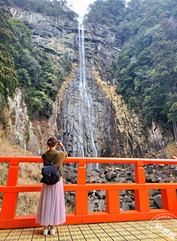 圖說:寺內的朱紅色三重塔是該地的標誌性建築,與後方落差 133 公尺的「那智瀑布」交相輝映,是拍攝和歌山代表性美景的最佳位置。 (攝影/ 廖晨光)