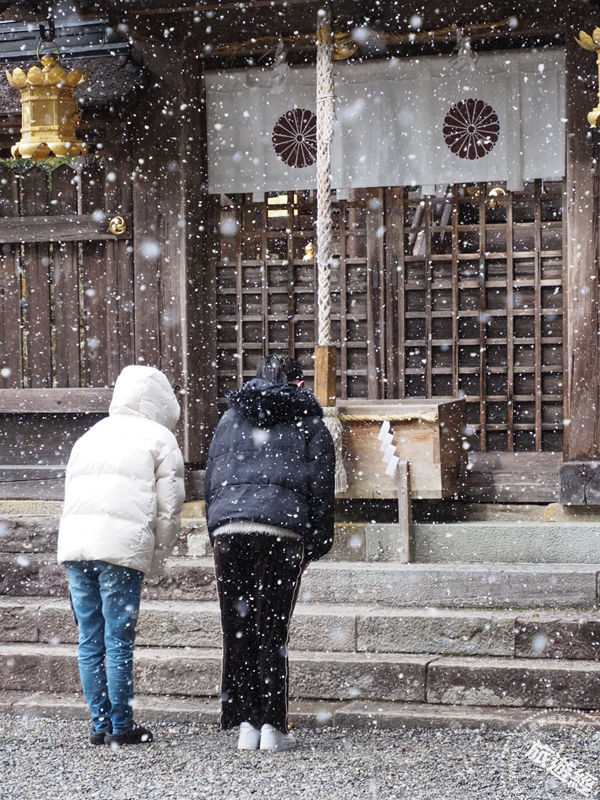圖說:大片雪花紛飛而下,神社靜靜矗立在群山之中,黑色社殿與純白雪景交織,神聖、莊嚴,而美得令人屏息。 (攝影/ 廖晨光)