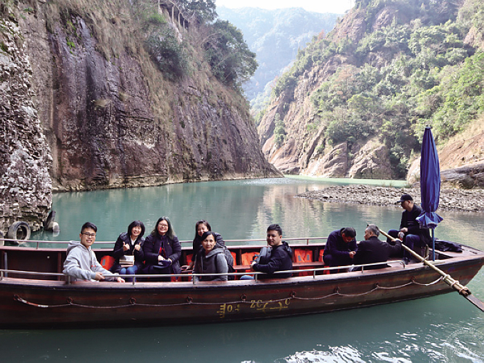 輕鬆悠遊水墨世界,這次體驗從小港漂流到獅子岩,全長約5公里,5人搭乘一艘,漂遊江上遠眺綿綿青山,近賞碧藍江水,時間大約45分鐘到1小時,溪水清澈見底,水面寛而淺,平均水深約100公分,沿途可見婦人洗衣、鴨子戲水,享受江風徐徐,涓涓水流,令人心曠神怡,是最受歡迎的行程。