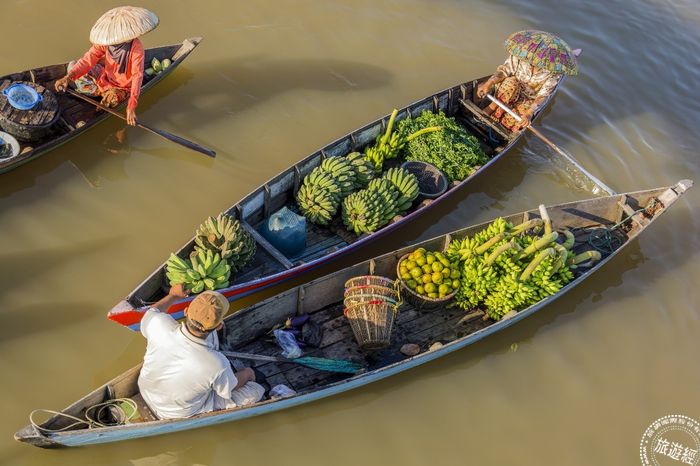 色彩繽紛的蔬果猶如彩色盤點綴著水上市集。(圖片提供/旅遊經)