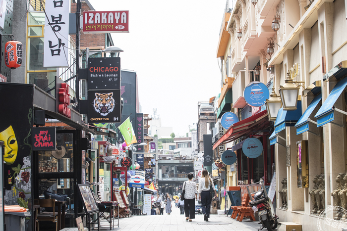當然這裡美食也具異國風情,單單外國人就經營了40多國異國料理餐廳,也讓梨泰院有了「世界美食街」的稱號。1990後期東南亞與中東地區的觀光客數量攀升,讓原本只是以美軍為中心的街道,更增添了許多異國色彩,是許多外國人士到訪韓國購物或大啖異國料理時必到的韓國購物、美食景點之一。梨泰院在交通中也相當便利,可搭乘首爾地鐵6號線,在綠莎坪站、梨泰院站、漢江鎮站下車均可。