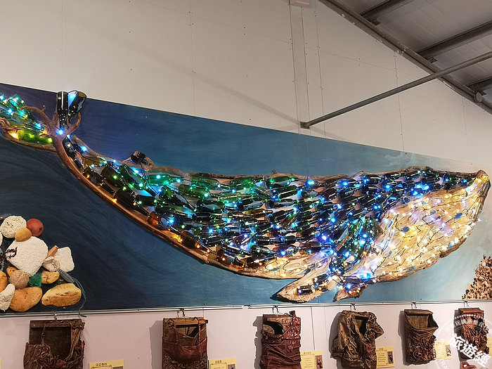 168支回收玻璃瓶製作而成「座頭鯨」(攝影:洪書瑱)