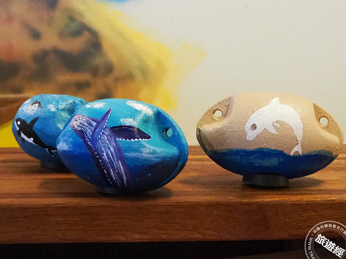走進「星空X藝素村」,以衝浪板為意象的村落招牌映入眼簾,預告「這裡」充滿滿滿的海洋風情,一旁以浮球彩繪的藝術裝置可愛吸睛,呼應了「這裡」推廣的環保理念,村落內處處可見以海廢料打造的藝術裝置、有浮球撲滿、玻璃藝術、虎鯨畫作等,就連店鋪的照明燈都是利用浮球改造而成,處處充滿巧思,尤其村中那幅由168支回收玻璃瓶製作而成「座頭鯨」,與一幅利用海廢浮鏢、瓶蓋創作出的海豚母子裝置藝術等都相當吸睛!另外還有限定展覽──2021年貢寮‧共聊千歲術展,由一群長輩利用豆腐板、不要的衣服所製作的藝術創作,也相當有看法,活動至2月6日止。