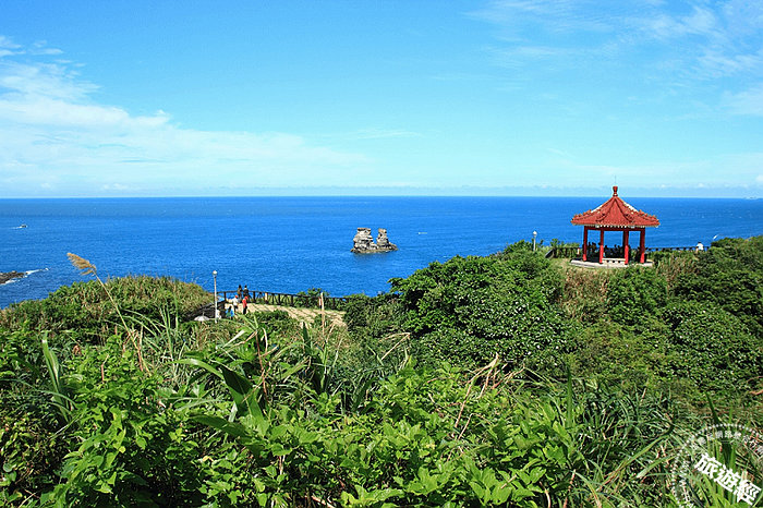 獅頭山三面臨海,除東西二側漁港之外,北側獅尾突出於海面,懸崖下是一片潔淨細白沙灘,附近遍布美麗奇石怪岩就是傳說中的神秘海岸!鄰近海面上,另有2小嶼如燭臺般矗立於海面互相對峙,為著名金山八景中的「燭臺雙嶼」,高約60公尺,原本是磺港半島末端,由於早年該地地盤上升,加上海水不斷激烈地侵蝕,使其與半島分隔,隆起的礁石經過長時間海浪侵蝕,下方海蝕洞逐漸貫穿成海岬,形成類似石門的海拱,後來海拱頂部崩塌,形成顯礁,就是海石柱地形,石柱岩基相連,水面上分歧為雙嶼,外形宛如一對燭臺,十分特別。